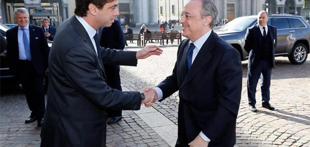 أكدت تقارير صحفية إيطالية، أن رئيس نادي ريال مدريد فلورنتينو بيريز اجتمع، مع أندريا أنييلي رئيس نادي يوفنتوس ورئيس رابطة الأندية الأوروبية.